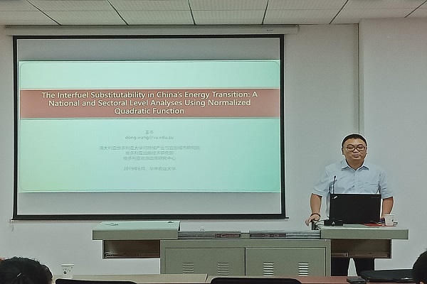 6月12日,维多利亚大学研究员王冬受邀作客我校公共管理论坛,在人文楼M221为学院师生带来题为“The Interfuel Substitutability in China’s Energy Transition: A National and Sectoral Level Analyses Using Normalized Quadratic Function”的报告,报告会由91吃瓜网