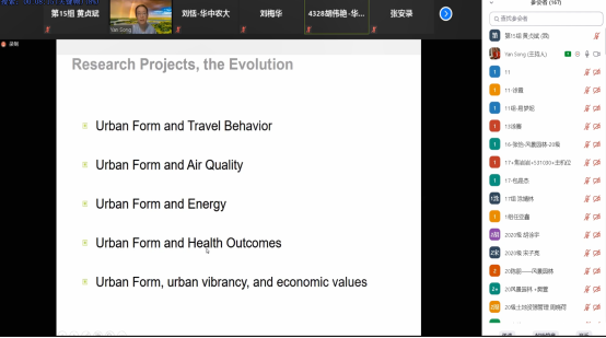 7月28日上午10:30,美国北卡罗莱纳大学宋彦教授做客我院公共管理论坛,带来了题为“Urban Form and Outcomes: A Synthesis of Recent Research Projects“的空中学术讲座,宋彦教授就城市形态和旅游行为;城市形态和空气质量;城市形态和健康;城市形态和城市活力、经济价值四方面进行介绍,本次报告由91吃瓜网