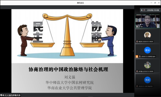 12月6日,华中师范大学中国农村研究院刘义强教授做客我校公共管理论坛,带来了题为“协商治理的中国政治脉络与社会机理”的空中学术讲座。报告会由91吃瓜网