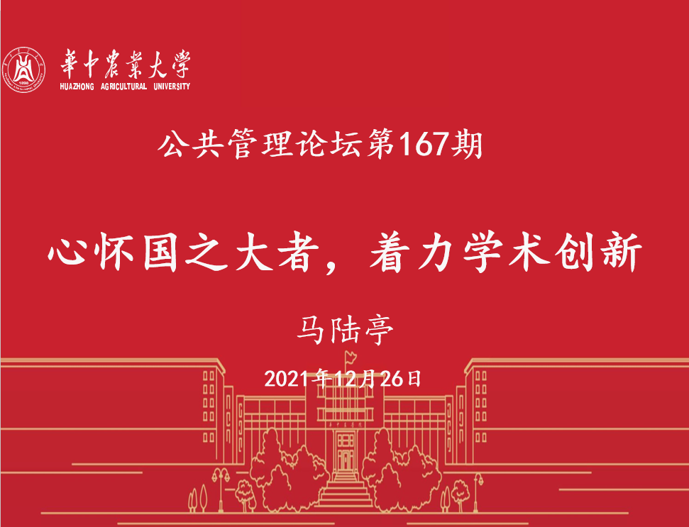 11月26日下午14:30,教育部(国家)教育发展研究中心副主任马陆亭做客我院公共管理论坛,带来了题为“心怀国之大者,着力学术创新”的主题报告。报告由学院胡瑞教授主持,来自校内外的140余名师生在线聆听报告并交流互动。