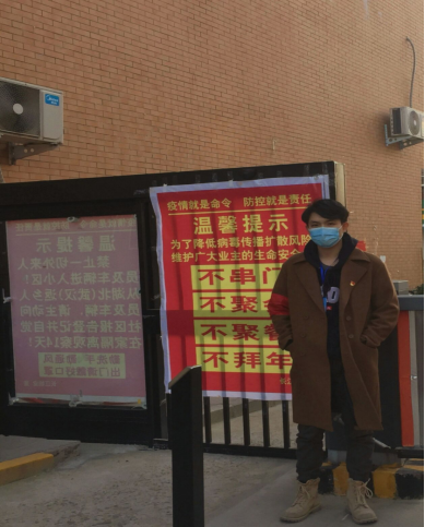 由于江西跟湖北一水相连,我从武汉回到家乡后不久,疫情便在我们当地发生了。在村里,我积极主动配合村委会干部进行武汉返乡人员登记和体温测量,做好各种防护措施。我们村大年初四开始封闭管理,村里农民普遍文化水平不高,对疫情严重程度认识不够,有的村民外出不戴口罩,甚至还聚集一起聊天。看到这些情况,我感到内心十分焦灼,心想自己作为一名共产党员,又是学生党支部书记,总要为当地做点力所能及之事。了解到村口设有检查疫站对村民进行教育工作,我便主动找到村干部表达了做志愿者的意愿。2月初,我开始在村口协助村干部登记出入人员信息,进行相关人员劝返,上户办理临时通行证及测量体温等工作,认真细致地完成每一项检查登记任务。身为研究生党员的我们必须要以高度的政治觉悟和责任担当尽己所能做好疫情防控工作,只有这样,我们才不愧对身上的党徽,不愧对自己的初心!