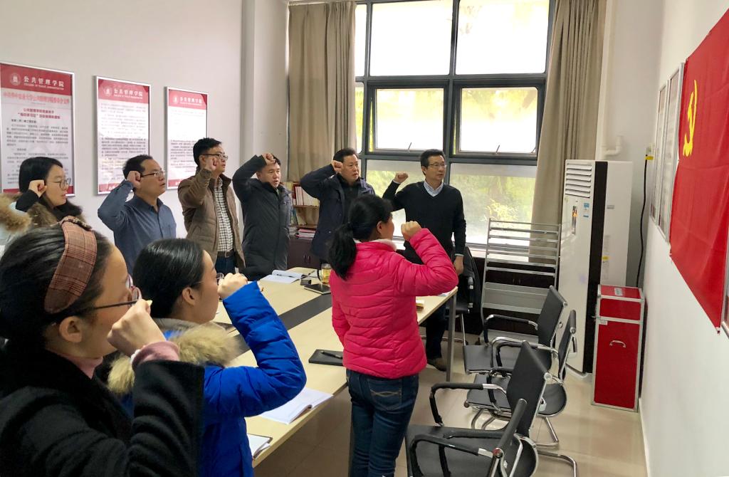 程为民强调,大会吹响了中华民族的集结号,也发出了实现伟大复兴中国梦的动员令,全体党员同志一定要“听党话,跟党走”,在为人民服务的奋斗中实现自己的人生价值。他结合学院事业发展,激励党员同志们“更加敢于担当,更加勤于奉献,更加奋发有为”,紧紧围绕学院“冲A”行动,制定自己的“冲A”日程表,激发每个人的“冲A”新动能。程为民认为,总结公管历史,落实公管方案,才能回答好公管答卷。“起步要稳,持续发力,坚持不懈,步步为营,踏石留痕”,握紧手中的接力棒,跑出一个好成绩,无愧于时代,无愧于历史,无愧于人民。