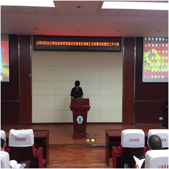 7月5日下午,学院在人文楼M115报告厅召开了全院教职工大会传达落实教育部党组巡视督查反馈意见,全体教职工参加了会议,会议由党委书记程为民主持。