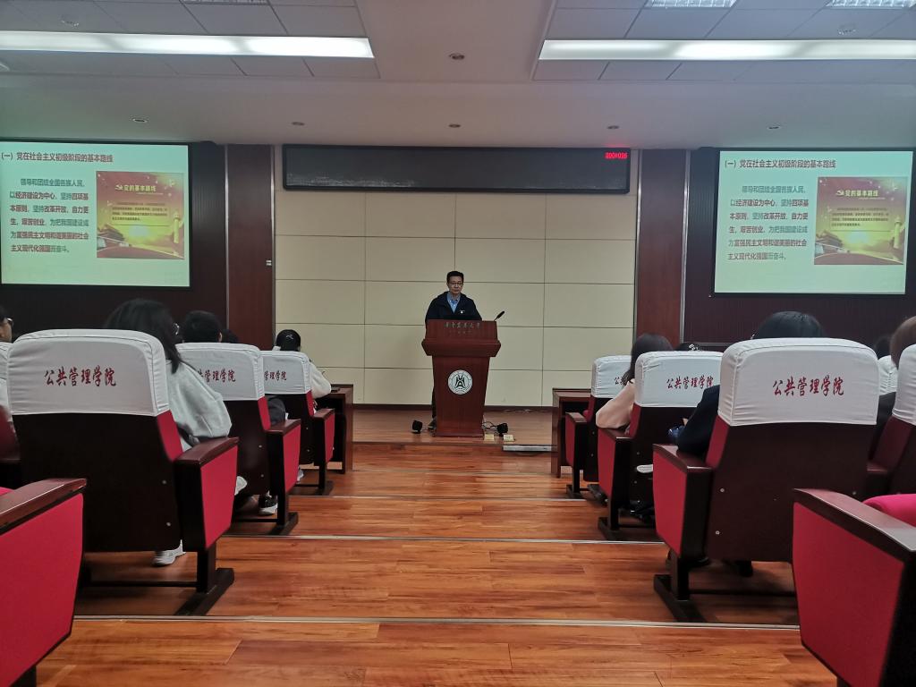 331日下午,学院第79期入党积极分子第一次线下讲座在人文楼M115举行。本次讲座由学院党委副书记樊华主讲,主题为“学党史,悟思想——中国共产党的基本理论、基本路线和基本方略”。