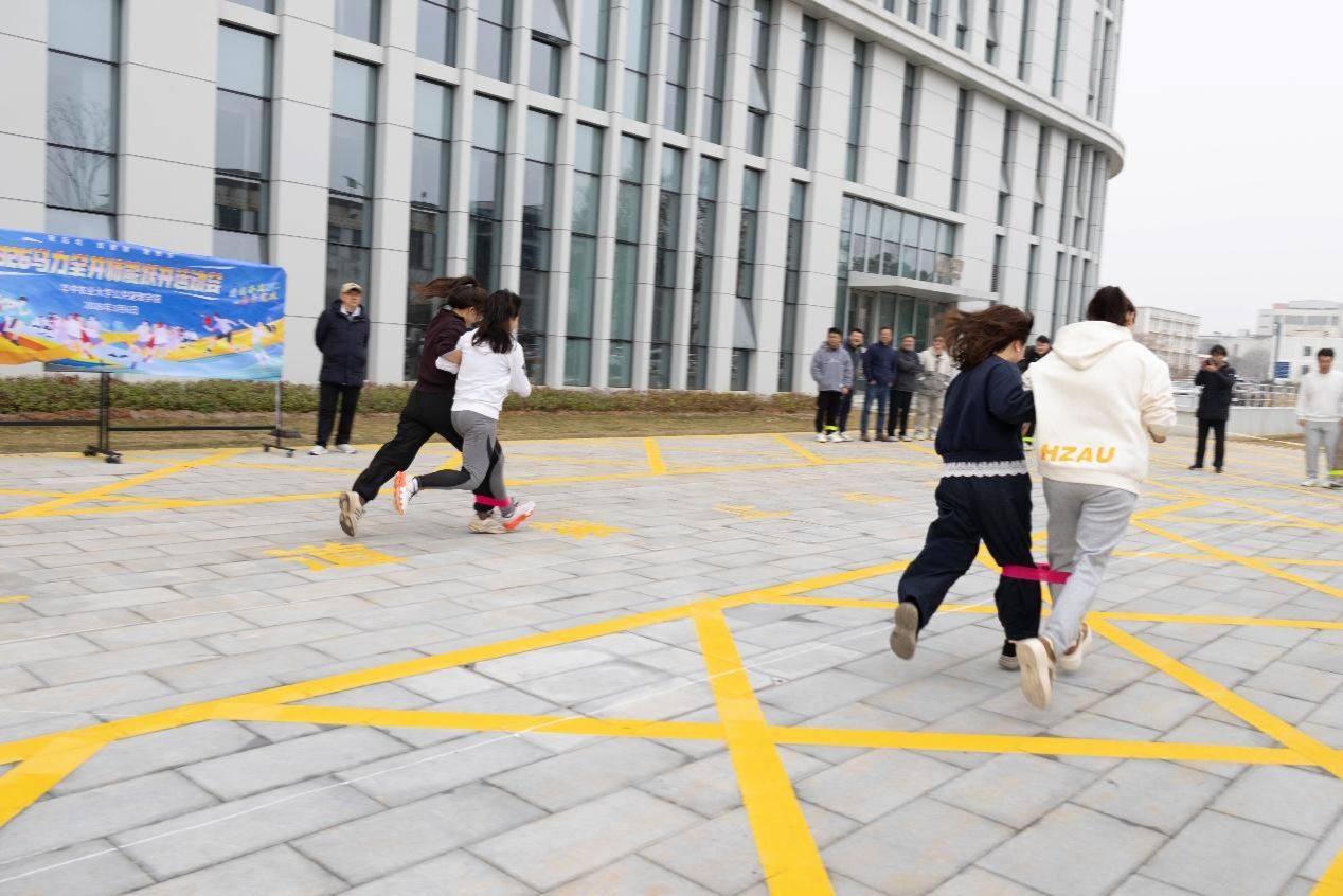 两人三足比赛中,各系队员两两结对配合冲刺,集体拔河项目更是将活动氛围推至顶峰,各系队员紧握长绳、脚蹬地面、重心后移,红绸带反复拉锯、僵持不下。土地管理系与行政管理系的决赛尤为焦灼,双方队员即便体力逐渐耗竭,仍咬牙坚持、决不放弃,尽显团队韧性。