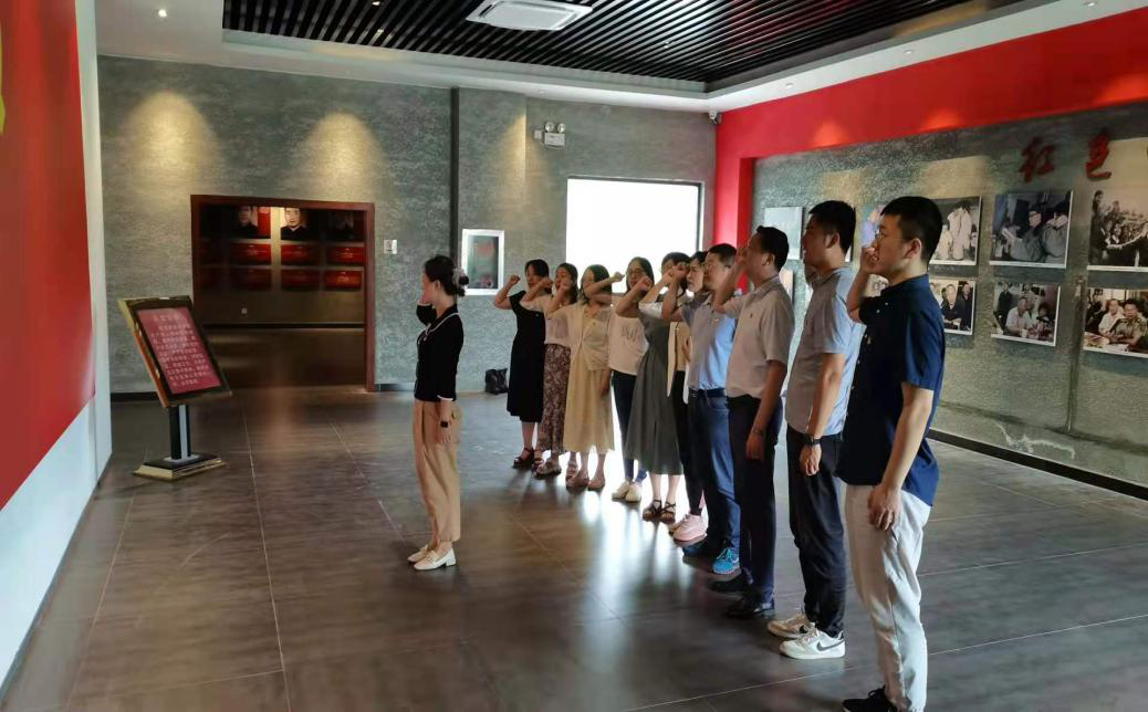 隽水滔滔,群山巍巍,烈士鲜血,染红银邑。支部全体人员怀着无比崇敬的心情,面向罗荣桓元帅铜像深深地三鞠躬,随后进入纪念馆参观学习。馆内陈列了大量珍贵革命文物和文字图片,再现了以罗荣桓同志为代表的众多先烈在通城的革命历程。八七会议后,罗荣桓带领通城县农民军打响了全国秋暴第一枪,建立了我国历史上第一个县级红色政权——通城劳农政府。他们坚定的政治信仰、艰苦奋斗的拼搏精神和勇往直前的革命豪情,为支部全体成员上了一堂生动的红色党课。来到党旗前,党员同志庄严宣誓,牢记初心使命。