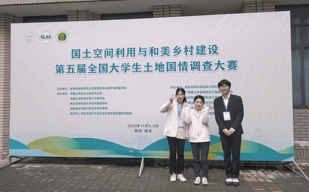 11月3日至5日,第五届全国大学生土地国情调查大赛决赛在西北农林科技大学隆重举行。大赛由教育部高等学校公共管理类专业教学指导委员会主办,中国土地学会土地经济分会、中国土地学会科普工作委员会、西北农林科技大学经济管理学院、陕西省乡村振兴软科学研究基地、黄河中上游生态保护与农业农村高质量发展研究基地承办。学院陈丹玲老师及4名土地资源管理专业本科生前往现场参加决赛。