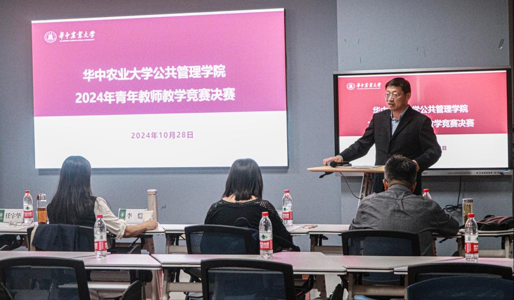 10月28日下午,学院2024年度青年教师教学竞赛决赛在人文楼M221举行,学院四个系的12名青年教师参与了此次决赛的激烈比拼。学校教学督导任宇华教授、化学学院副院长曹敏惠教授、马克思主义学院李恺教授、学院教指委主任彭开丽教授以及各系优秀教师代表担任竞赛评委。学院党委书记周向阳、院长柯新利、副院长汪文雄现场观摩指导。经过紧张而精彩的角逐,田甜老师荣获一等奖,何利杰老师、姜庆志老师荣获二等奖,刘姿媚老师、王巧老师、魏威老师荣获三等奖。