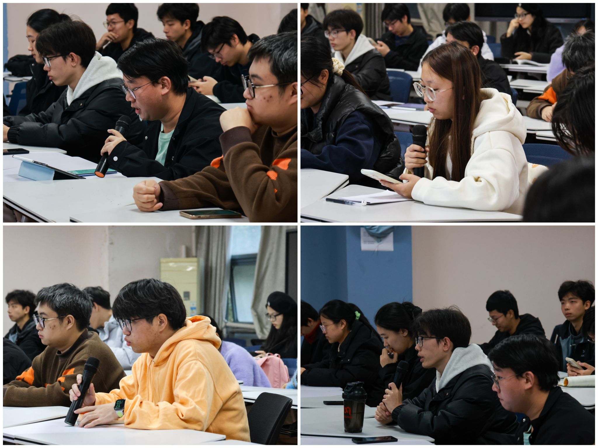 针对学生反馈,参会教师逐一回应并解答。周雷处长表示,学校将坚持问题导向,系统梳理问题台账,制定整改措施,推动问题精准解决。副书记罗晓峰提出,将组织高年级学生为新生提供学业规划、学科竞赛与科研项目指导,与部分课程效果不佳的教师沟通调整教学方式与节奏,为有需求的学生提供精细化朋辈辅导。