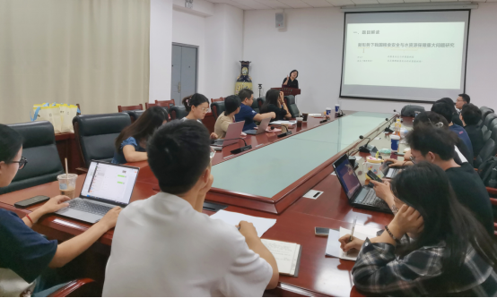 报告结束后,参会师生聚焦中国水资源状况、水资源对不同区域粮食生产的影响、研究数据和模型假设以及交叉学科课题研究等方面展开了讨论。何利杰老师就水量型缺水和水质型缺水两种情况对耕地和生态的影响与李晓云老师进行了讨论;曾晨老师和左成超老师就研究数据和研究模型假设的处理和使用提出疑问;杨帆老师就如何提高寻找交叉学科研究课题的敏感性提问;杨欣老师和胡小芳老师就粮食转型和农村人口结构对水资源利用的影响提出想法。土地资源管理专业21级研究生黄登赢就大食物观下粮食安全和食物安全之间的区别和联系以及研究侧重点提问。