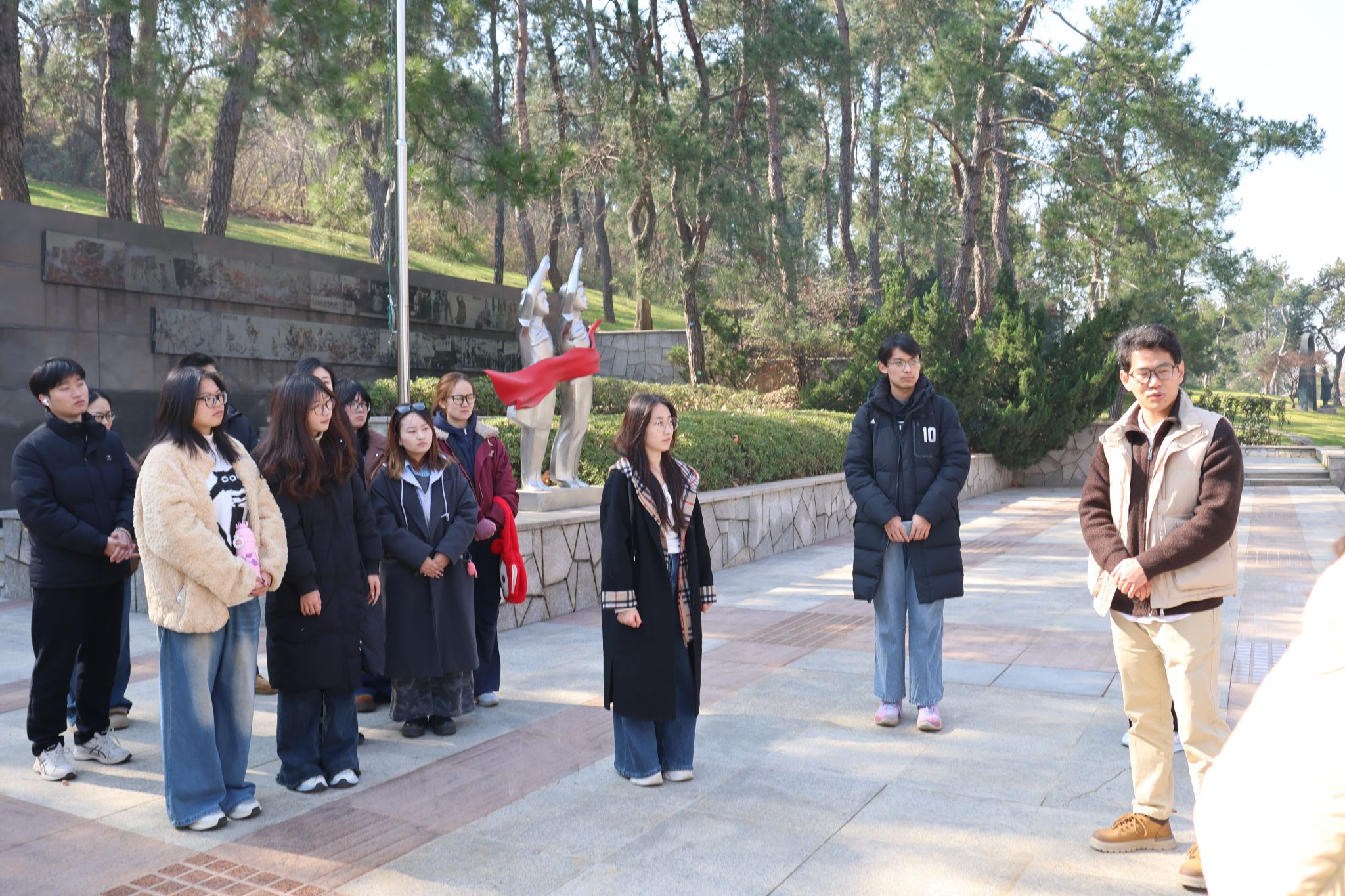 于1月13日上午组织2025年下半年新发展本科生和研究生预备党员前往武汉抗战纪念园开展实践教育,通过实地研学、庄严宣誓、现场教学与交流感悟,引导青年学生坚定理想信念、强化使命担当。一起参与活动的还有红色导师代表和教师代表。