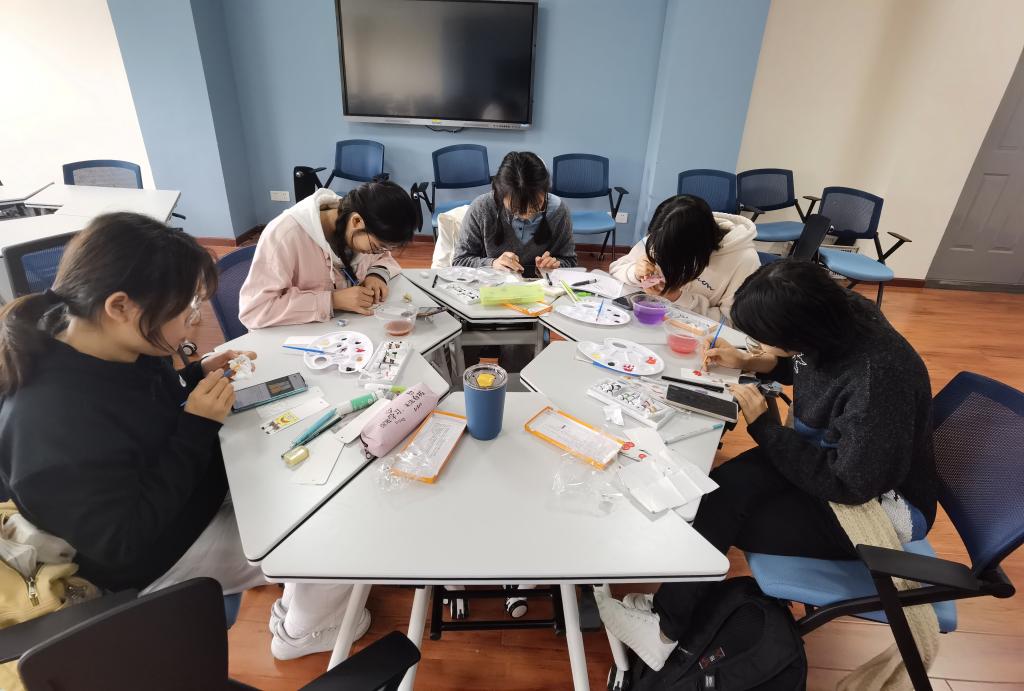 活动伊始,青志工作人员王心怡首先给大家讲解了精神疾病相关知识,随后现场同学自由分组进行书签创作。同学们用水彩颜料在空白书签上画上自己喜欢的图案,写上精神疾病的相关知识。书签制作完成之后,大家一起到户外分发给路过的同学们,并向校园里的同学们宣传精神疾病知识。