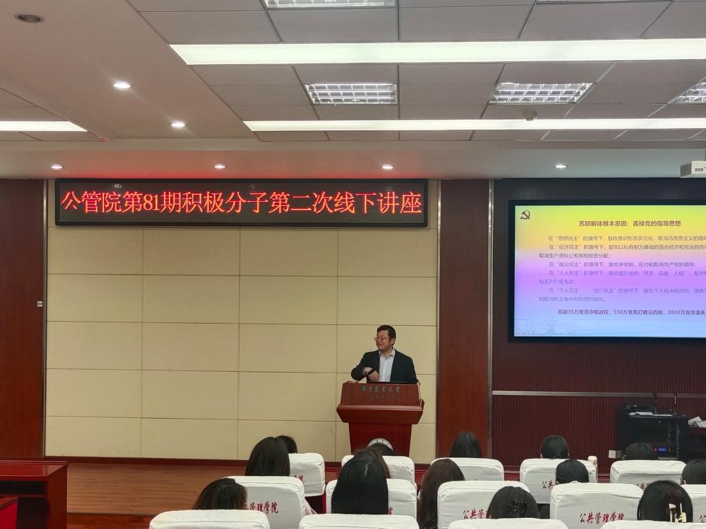 第81期入党积极分子第二次线下培训在人文楼M115举行。本次讲座以“学习中国共产党的指导思想”为主题,学院党委书记周向阳担任主讲人。