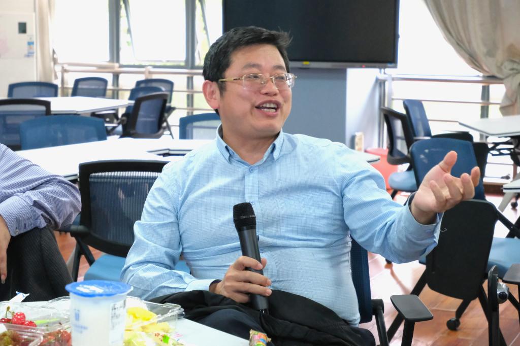 梅昀以个人自身丰富的经历为例,他谈到:“幸福感的获得是心灵拂尘的吸尘器,幸福感的获得主要取决于实际所获与内心预期的对比。”他鼓励各位老师做一位笃定的奋斗者,立足专业不断发挥自身优势,全方位实现自身价值,同时他也建议学院在事业发展上要时刻保持昂扬向上的态势,以巍巍巨轮之姿航向更远的彼岸,学院教职工方能时刻更受到不断开拓自我的幸福感与获得感。张莉萍、陈银蓉、王歌、李圣钰等师生也分别对“幸福”这一词语发表自己的观点并做了个人幸福趣事的分享。