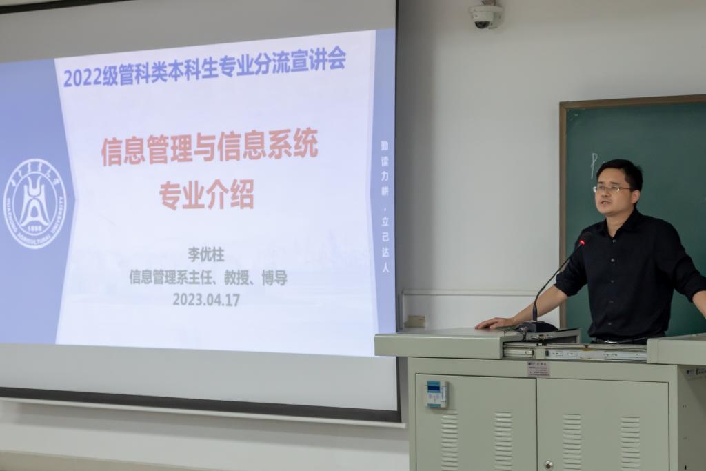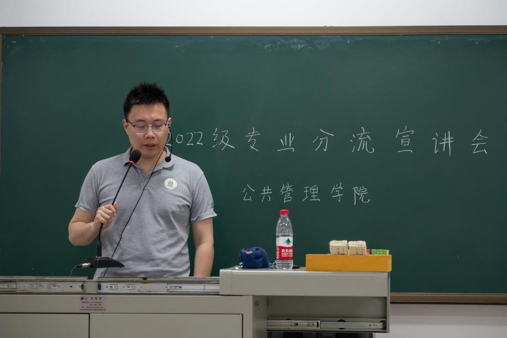 姜庆志向同学们介绍了行政管理专业的相关内容。他从三个方面入手,分别是“行管的定义与背景”、“华农行管的优势”和“行管专业的就业方向”,让同学们更深入地了解行政管理专业的特点和前景。姜庆志表示:“虽然华农的行政管理专业是比较年轻的专业,但它具有很大的发展潜力。”随后,他回答了同学们对行政管理专业的疑惑,包括人才培养方案的细节等。他也祝愿同学们能够进入自己心仪的专业,茁壮成长。