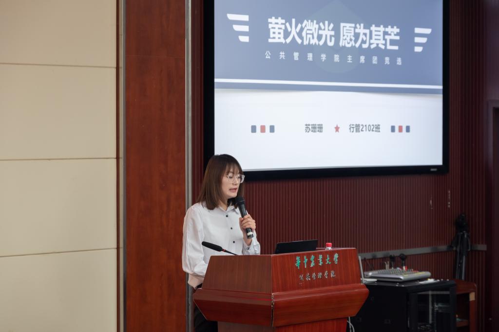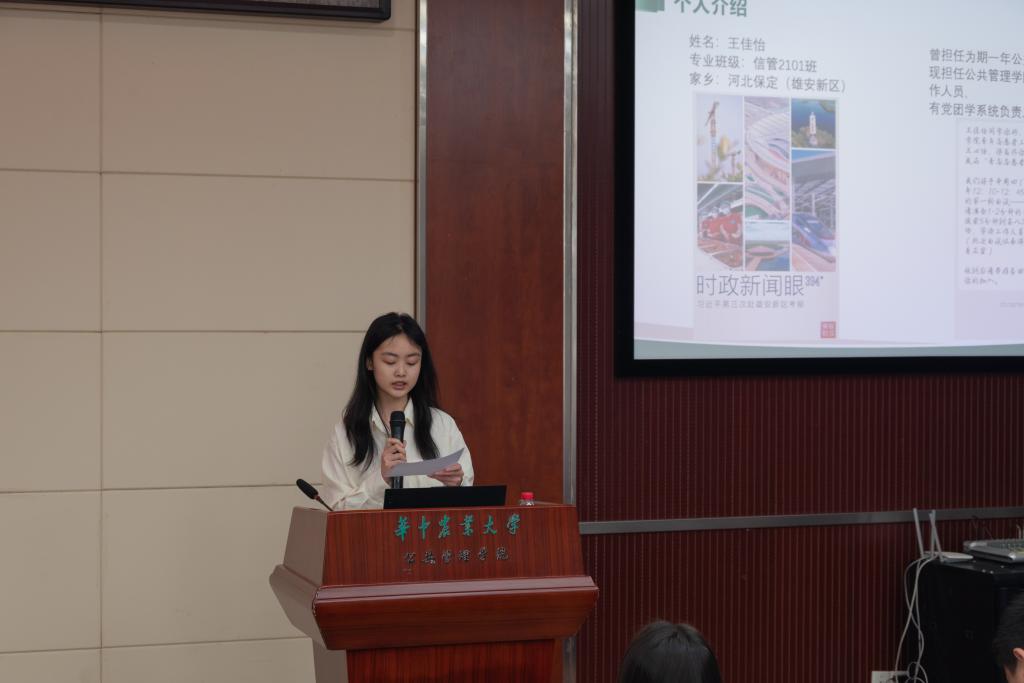 宣传系统负责人候选人陈馨怡介绍了自己的宣传工作经验。她表示,在未来的宣传内容方面,希望在延续原有内容的基础上,能够借助公众号平台开设更多互动板块,使宣传部门真正成为公管院师生交流的桥梁。她承诺将继续保持对学生工作的热爱,怀初心服务同学,以责任鞭策自我,致力于让宣传系统成为公管院一张有温度、有态度的名片。