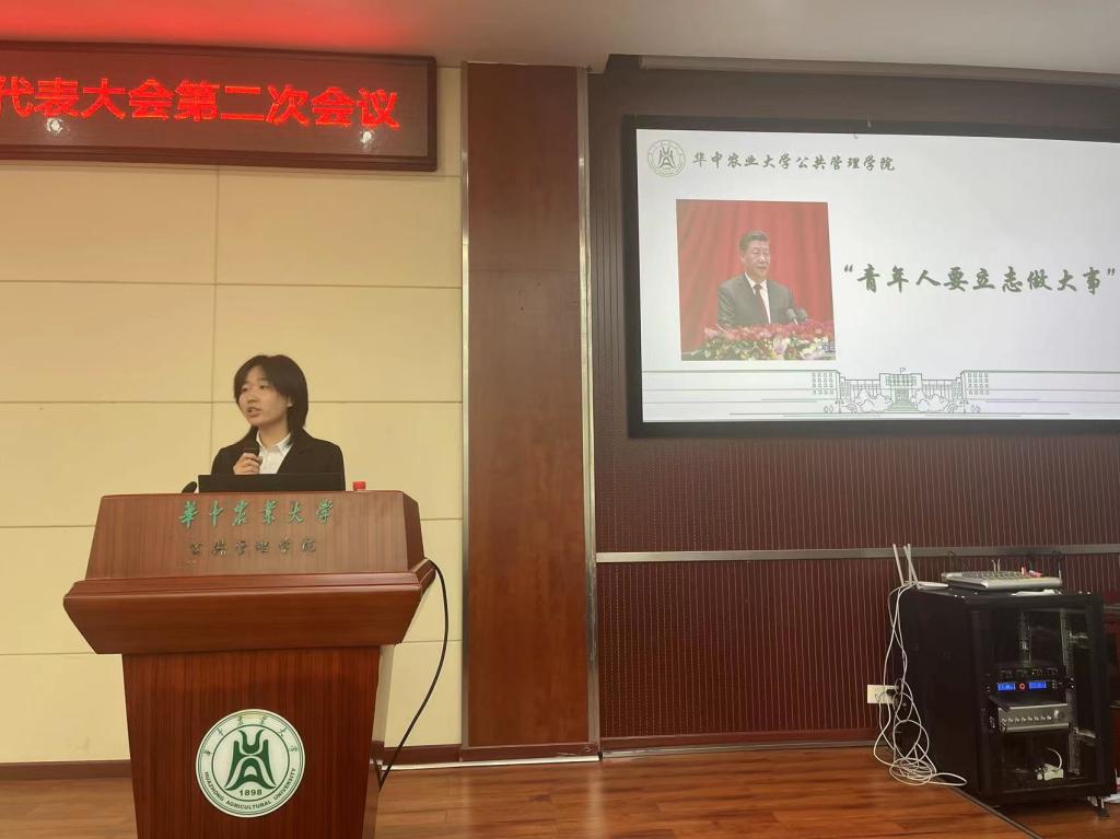 第九届学生会主席团成员汪扬代表第九届学生会向本次大会作报告。他谈到,学生会在过去一学年中充分发挥“自我教育、自我管理、自我服务”的工作职能,不断拓宽工作领域,创新工作模式,改进工作方法,在增强思想力量、强化责任担当、提升学习力量与认真服务师生的同时,也展现公管学子的独特风采。在全体学生会成员的共同努力和广大同学的鼎力协助下,学生会工作取得了显著的成绩,真正用实际行动传播公管价值、书写公管故事。
