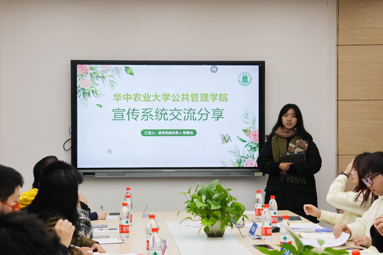 宣传系统负责人陈馨怡分享宣传工作经验:“要将笔交给每一位公管人”,做好每周投稿接收工作。院研究生会李豪杰讲述了本年度工作成果,提到我院学术晚茶活动实现了“新高度、新内容、新突破”的“三新”进步。