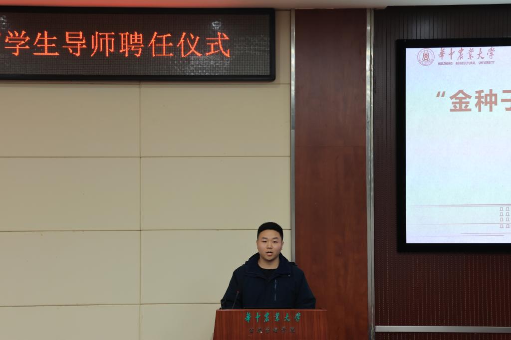 而后,樊华宣读了2023年“金种子成长帮扶计划”聘任学生导师名单,19位高年级本科生和硕士生受聘为学生导师,并为其颁发聘书。