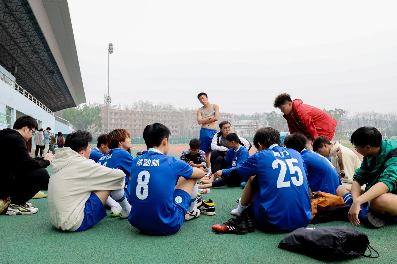 赛后,我院男足在短暂的庆祝之后立即展开了现场复盘。队员们围坐在一起,认真回顾每个人在球场上的表现,分析比赛中出现的问题和失误,并进行深入地自我反省。他们相互鼓励、交流经验,共同总结经验教训,为下一场比赛做好充分准备。