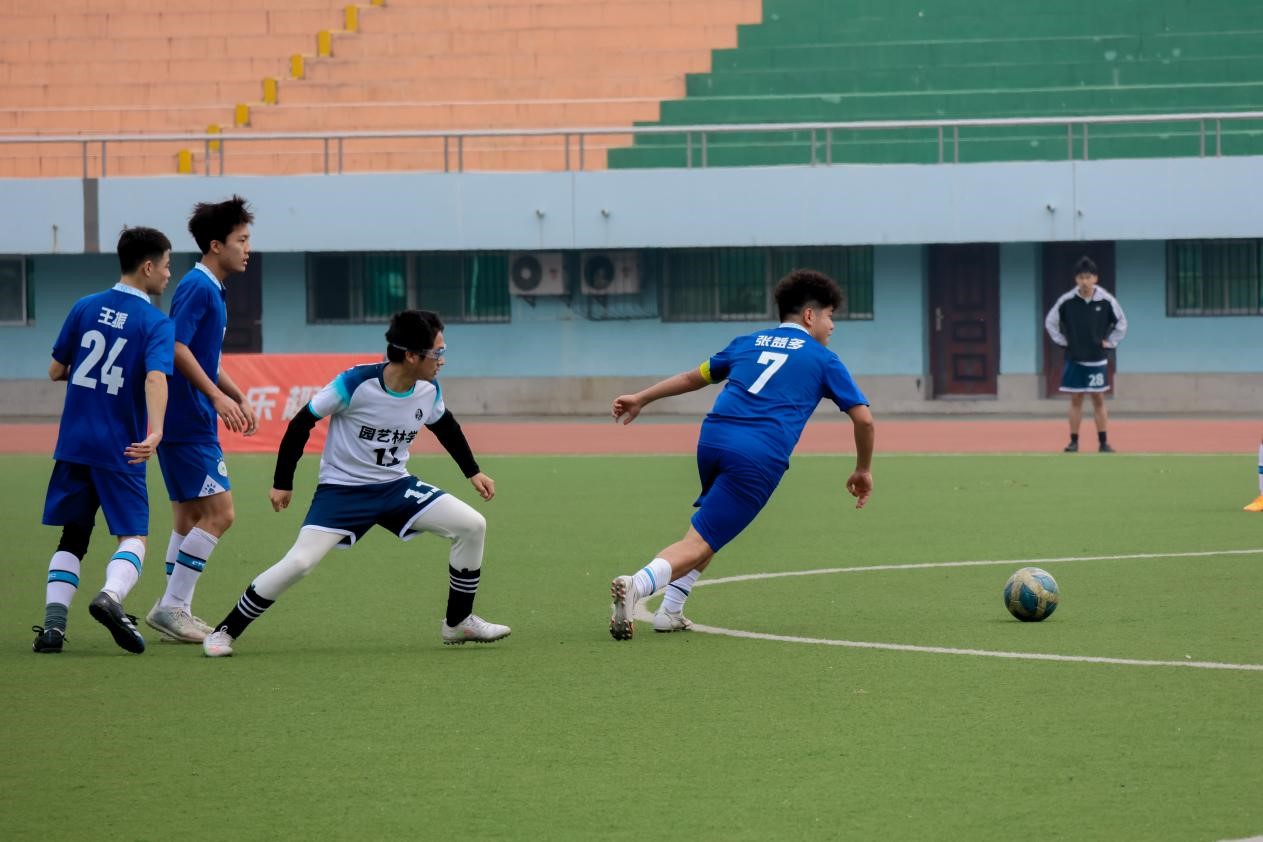 比赛进入下半场,经过短暂休息,园艺林学学院男足更加主动,展现出了顽强的意志和不屈的斗志,在混战中成功攻入一球,将比分扳平。这一进球让比赛的紧张氛围再度升级,双方队员们都加大了进攻力度,争夺着领先的机会。比赛进入白热化阶段,每一次传球、射门都牵动着观众的心弦,直到比赛结束的最后时刻,我院通过转换进攻方式,从中场直接推进,47号球员旦旺巧妙传球至30号艾合麦提·卡斯木,完成了一次完美的配合进球,以2:1的比分锁定胜局。