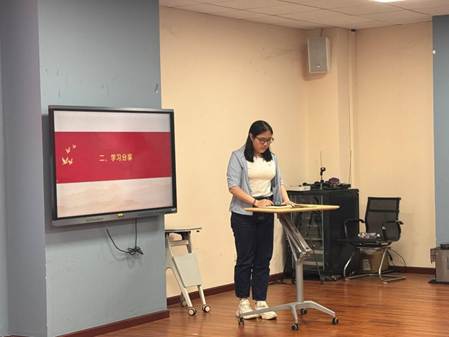 研究生第一党支部刘诗琪则就《关于加快构建普通高等学校毕业生高质量就业服务体系的意见》和《加快建设农业强国规划(2024—2035年)》两部分内容进行领学。她分享道,党员要以习近平新时代中国特色社会主义思想为纲领,推动城乡融合与乡村全面振兴,构建农业强国的“五强”目标。