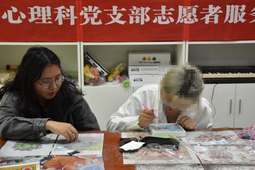 活动分为才艺展示、钻石画制作和游戏环节三个部分。 “龙卷风”合唱团首先演唱《稻香》、《康桥》等歌曲,采用阿卡贝拉无伴奏合唱形式,通过男女高低声部的灵活转换与巧妙配合,由浅入深传递出歌曲的饱满情绪,引人入胜。随后,青志工作人员卫子颖为大家详细介绍钻石画制作的具体步骤。在志愿者的耐心指导下,大家共同协作、相互配合,完成一张张漂亮的钻石画。青志负责人高江鹏表示:“希望合唱团动人的歌声可以给予患者们温暖,让他们感受到志愿者的热情关怀。我们也呼吁大家多关注大学生心理健康,希望能有更多大学生加入到关爱社会、服务大众的志愿服务队伍中来。”