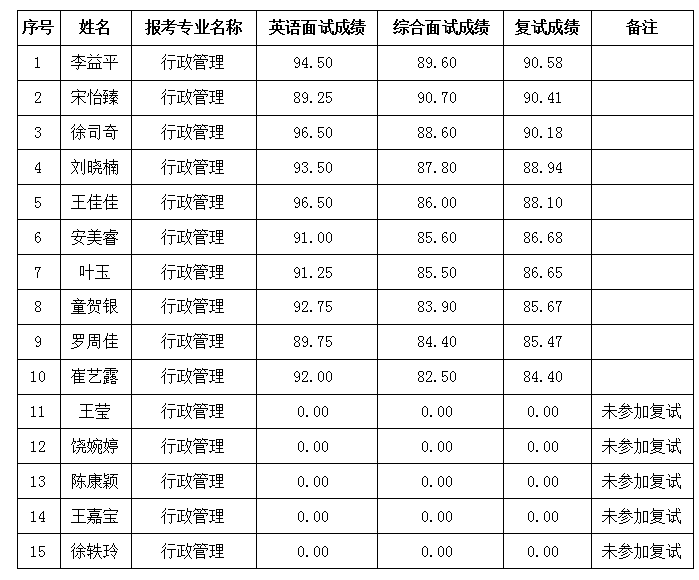 91吃瓜网 2023年接收推免硕士学位研究生复试成绩公示