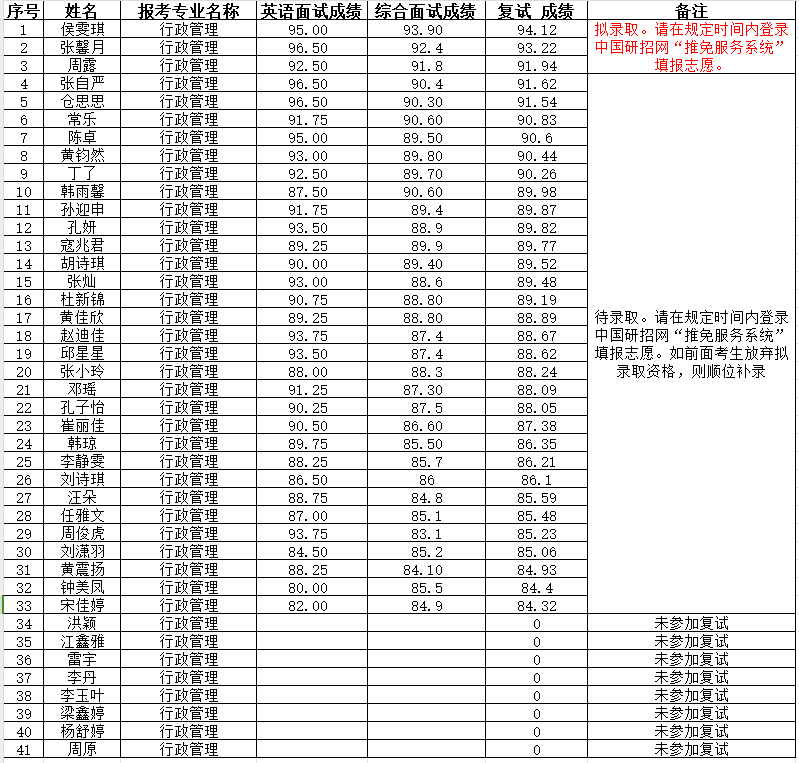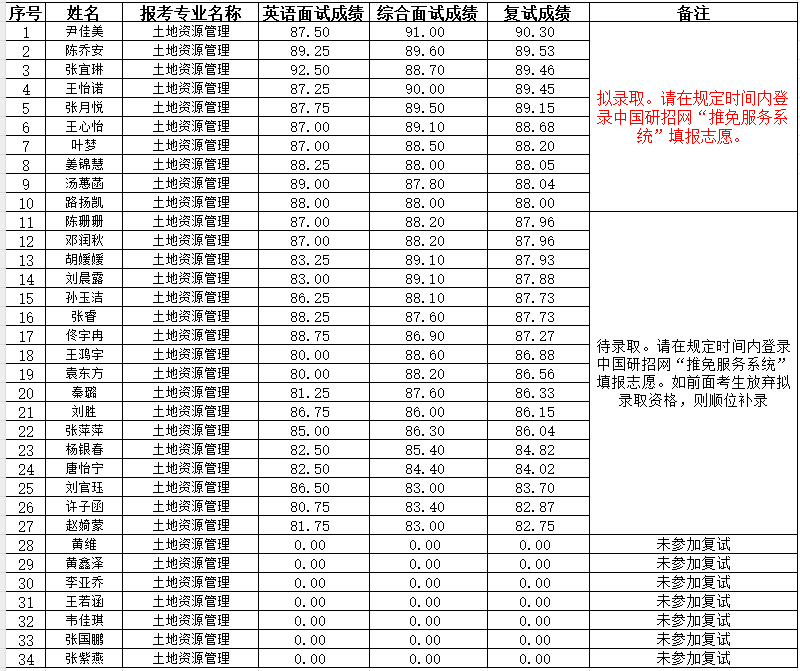 现将91吃瓜网 2024年接收推免硕士学位研究生复试成绩进行公示,公示期2024年9月26日至9月28日。考生如对成绩有异议,可在公示期内提出复议申请。联系电话027-87285058。